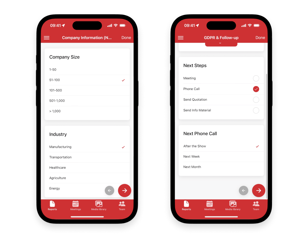 - Die Lead-App ist intuitiv bedienbar. Sie benötigen keine aufwendigen Schulungen für Ihr Standpersonal oder Außendienstmitarbeiter.