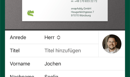 Quick contact data capture with snapAddy — and if you like, the data goes straight into your CRM system.